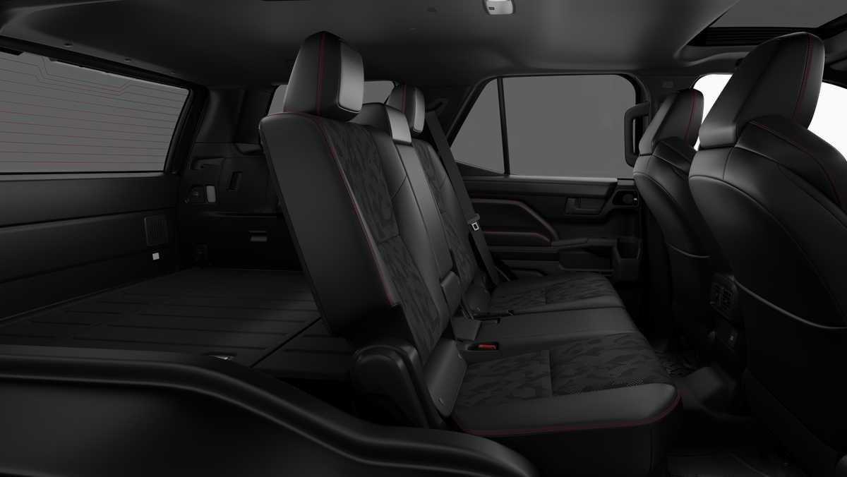 - 60/40 split, reclining and tumble-folding second-row seat with center armrest and cup holders