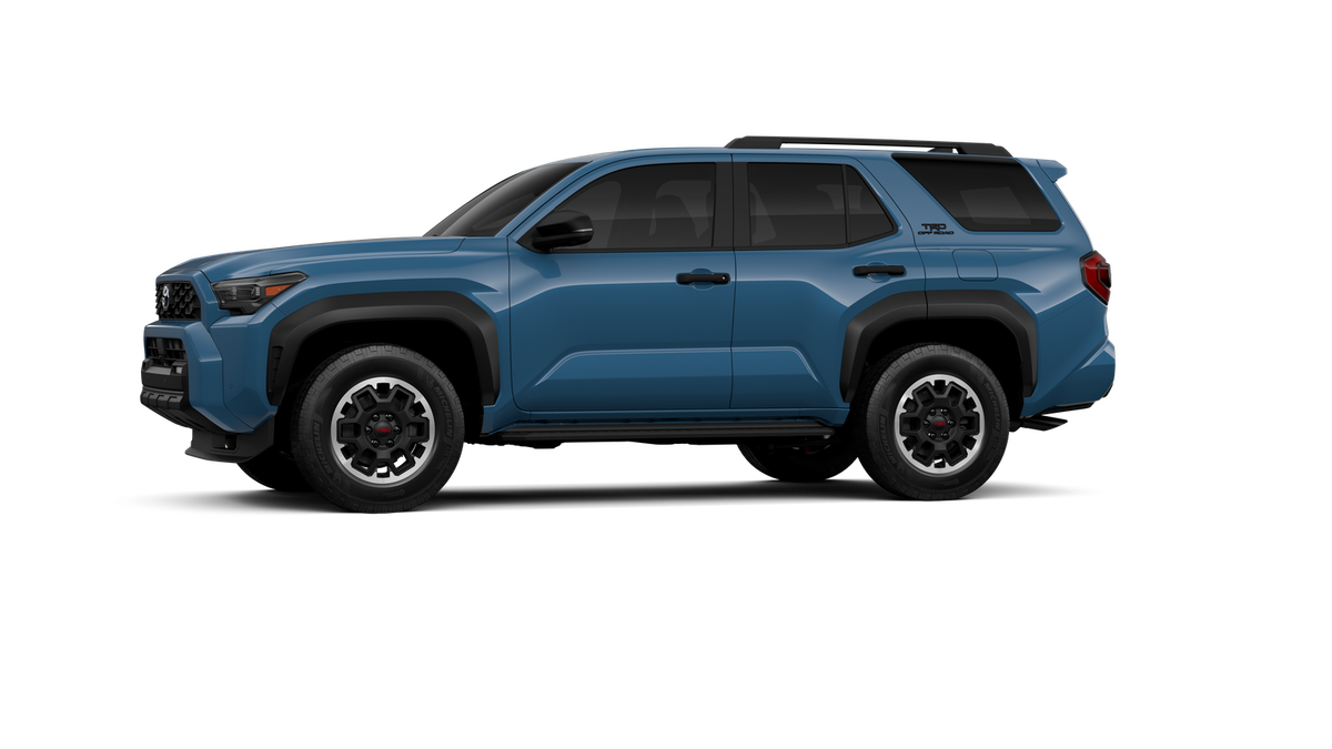 - Black honeycomb-style grille, mirror caps, door handles and overfenders; color-keyed rear spoiler; black "TRD OFF ROAD" and "4RUNNER" badges