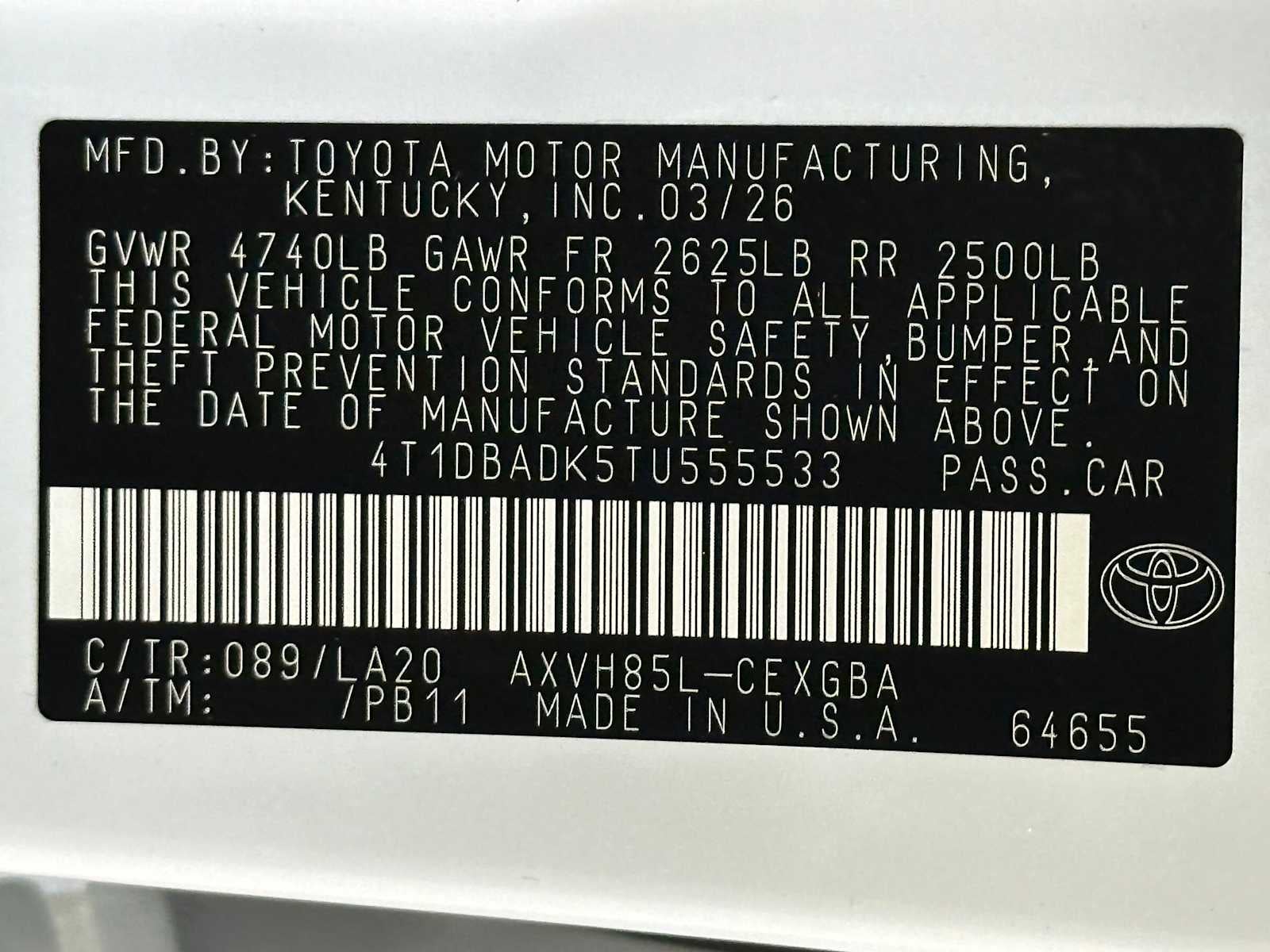 - Vehicle Name: Toyota Camry