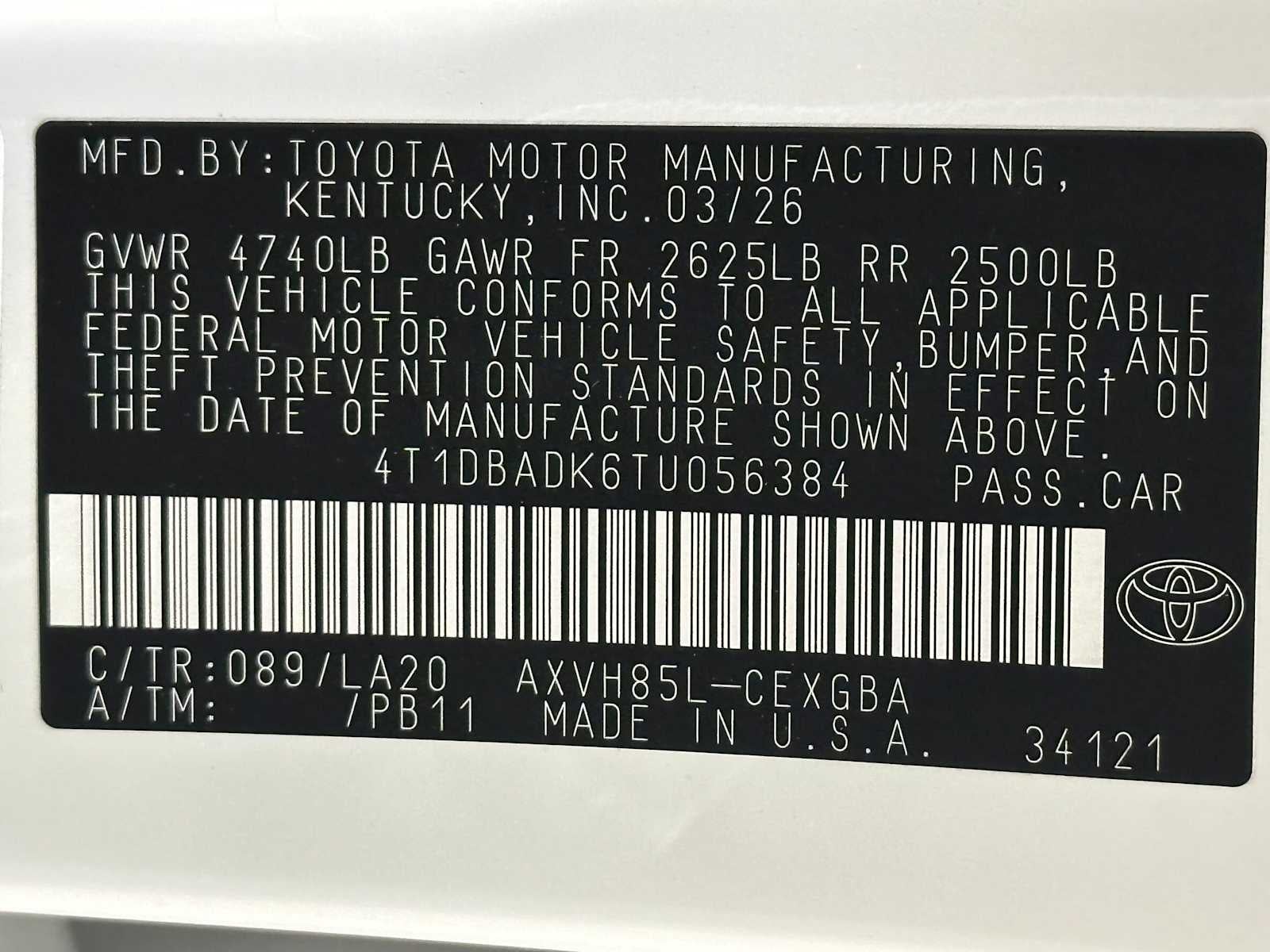 - Vehicle Name: Toyota Camry
