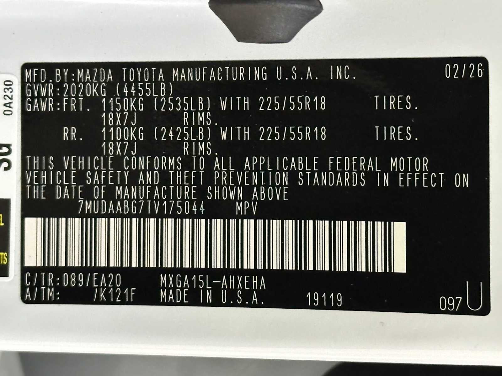 - Rear Tire Size: P225/55VR18