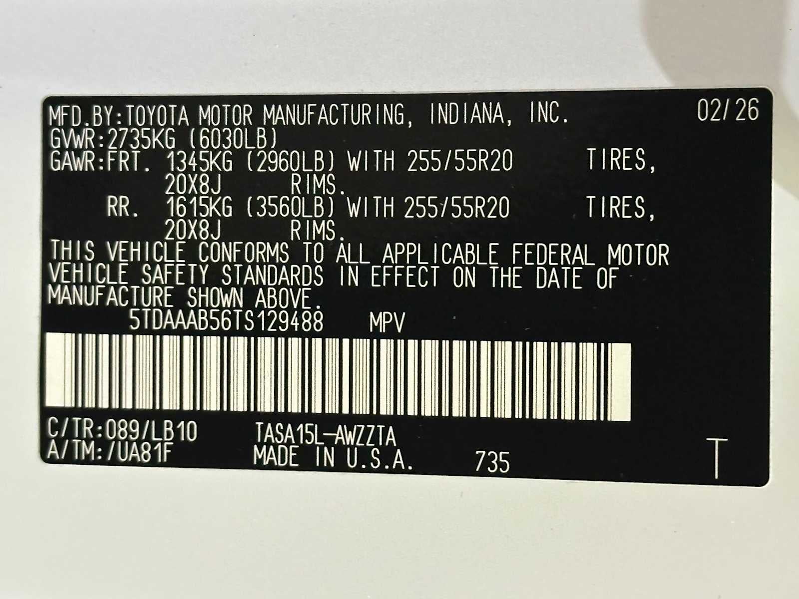 VIN: 5TDAAAB56TS129488