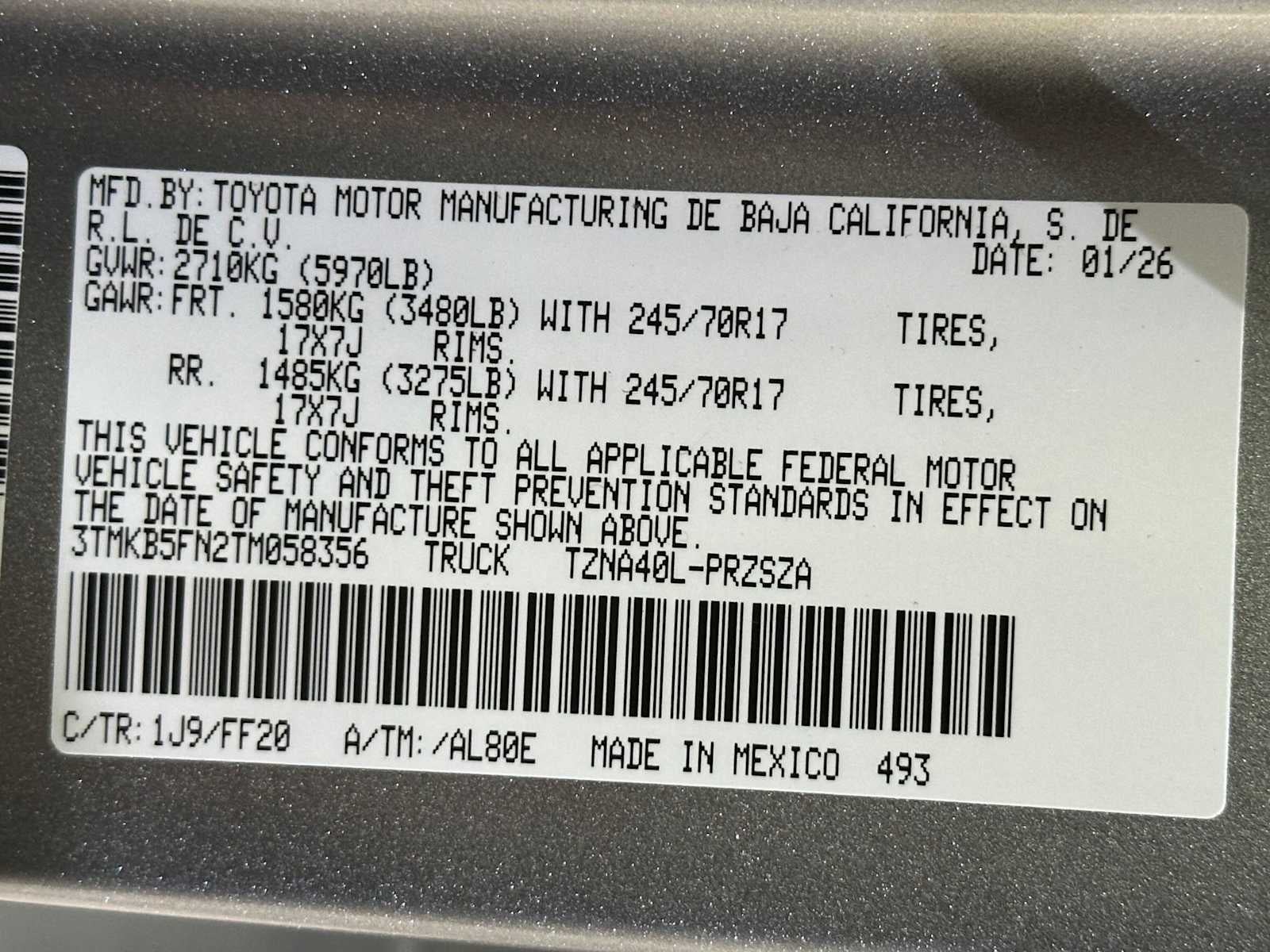 VIN: 3TMKB5FN2TM058356