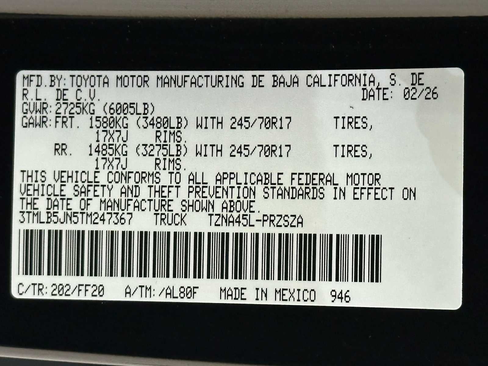 - Front Tire Size: P245/70TR17