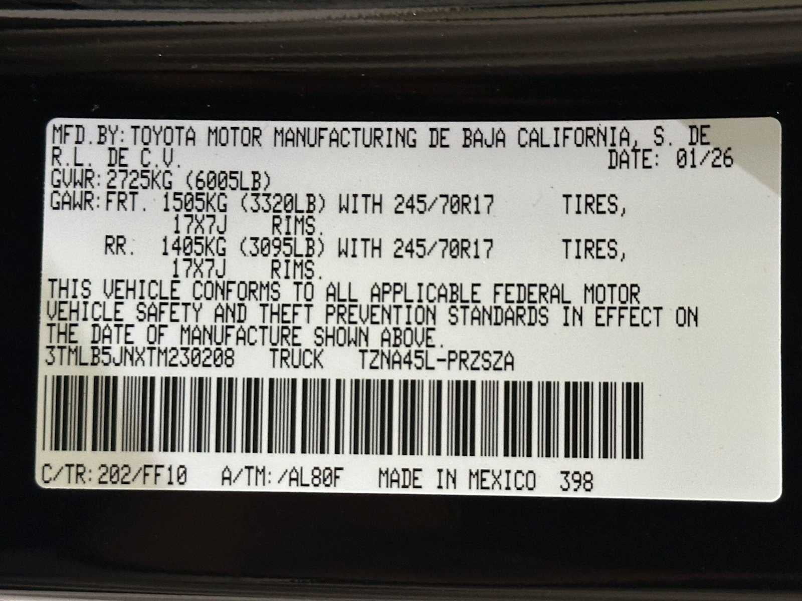 - Front Tire Size: P245/70TR17