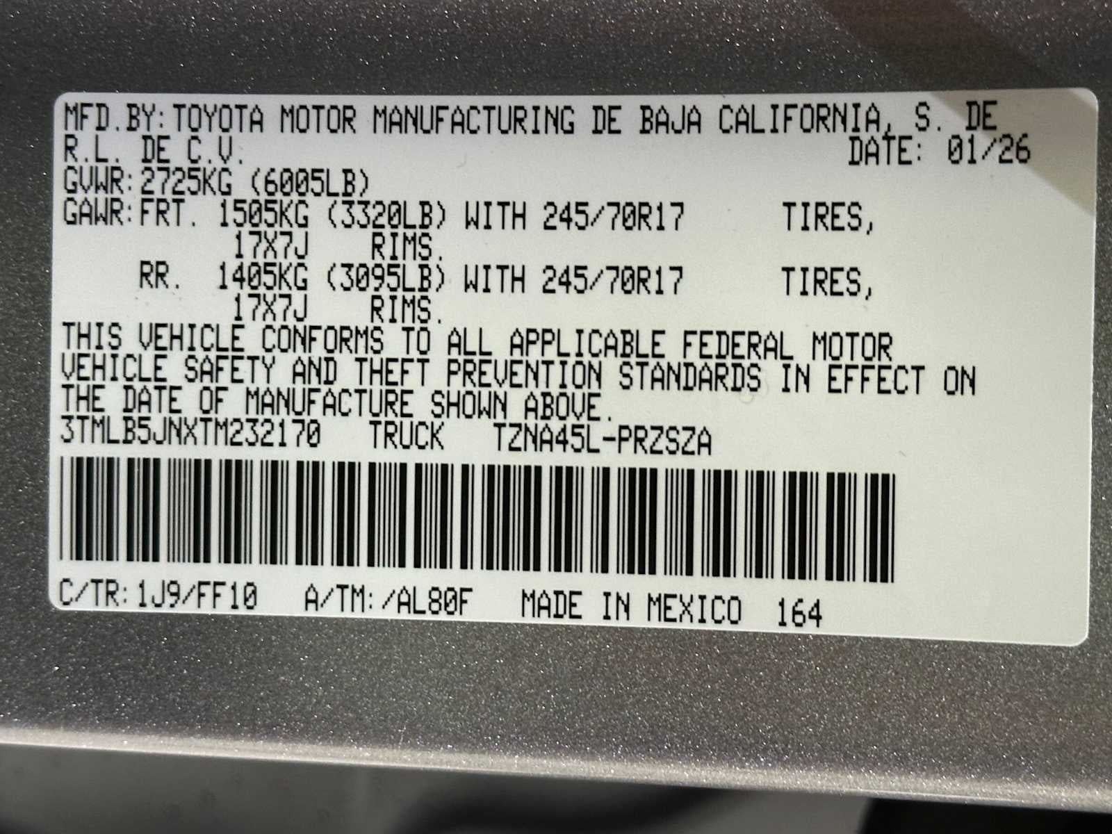 - Front Tire Size: P245/70TR17
