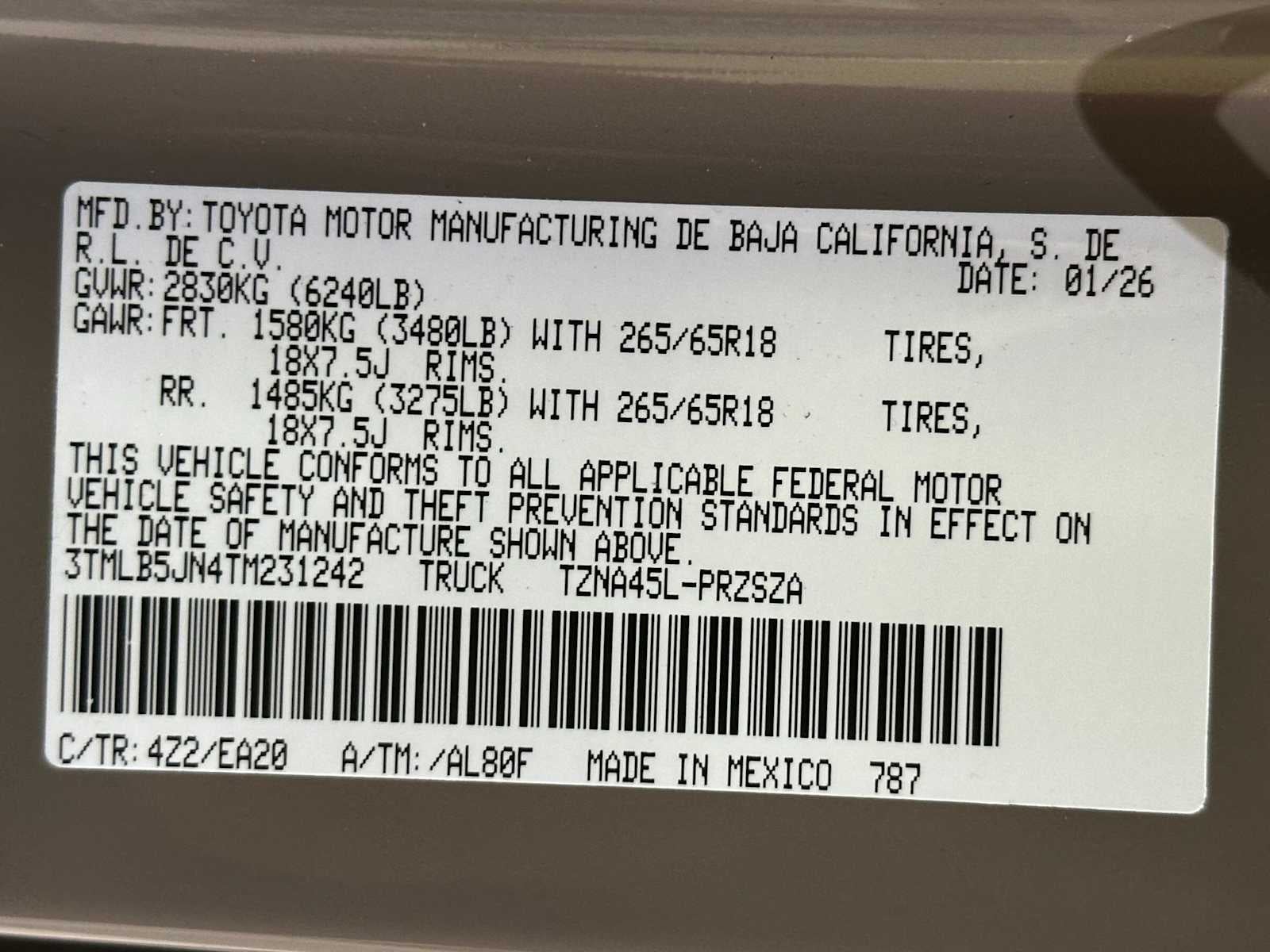 - Vehicle Name: Toyota Tacoma 4WD