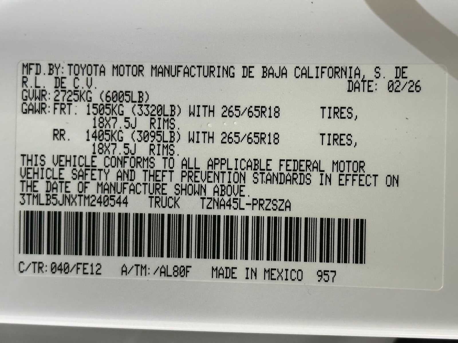 - Front Tire Size: P265/65TR18