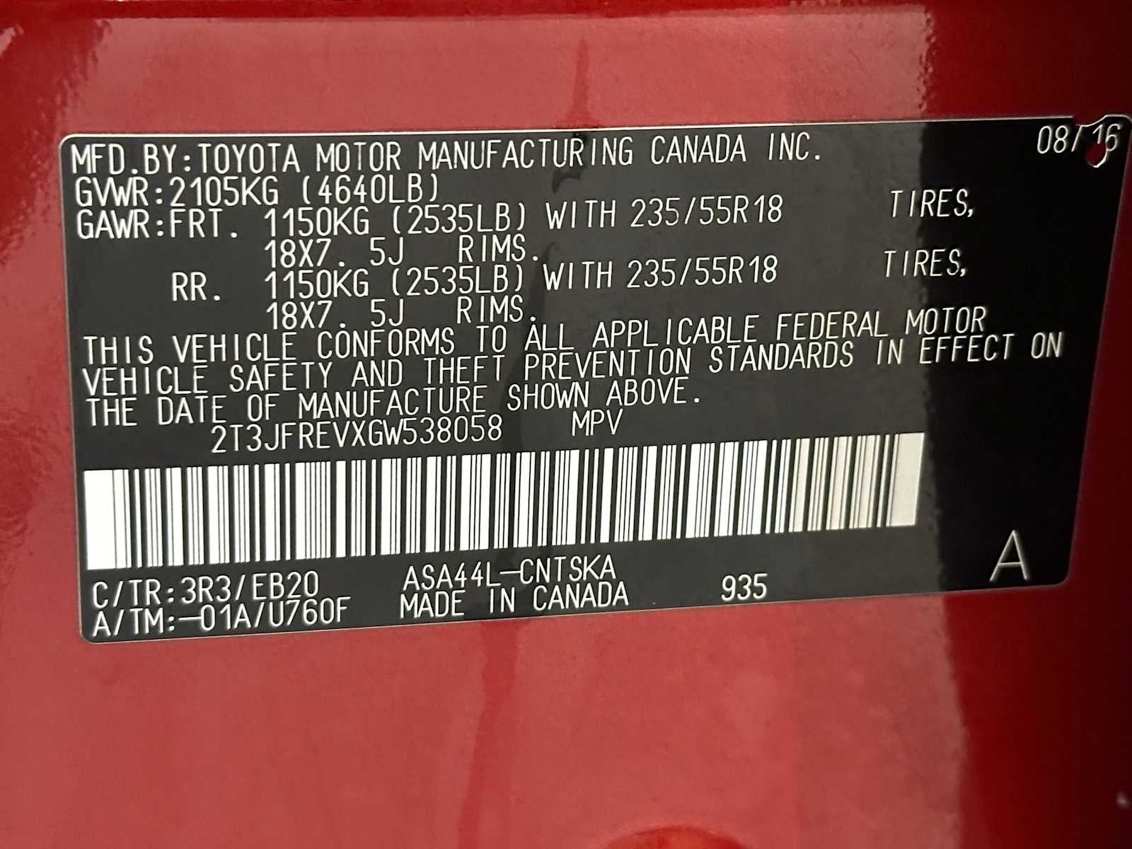 - Vehicle Name: Toyota RAV4