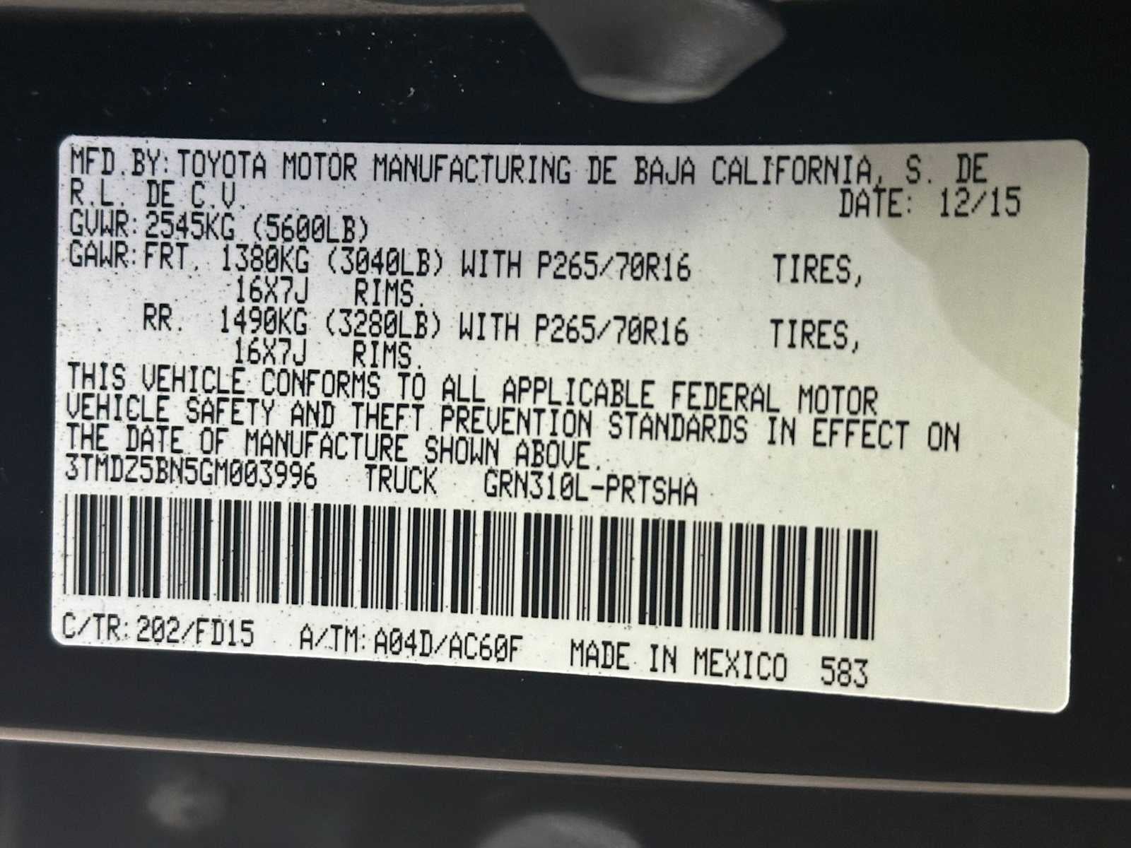 - Vehicle Name: Toyota Tacoma