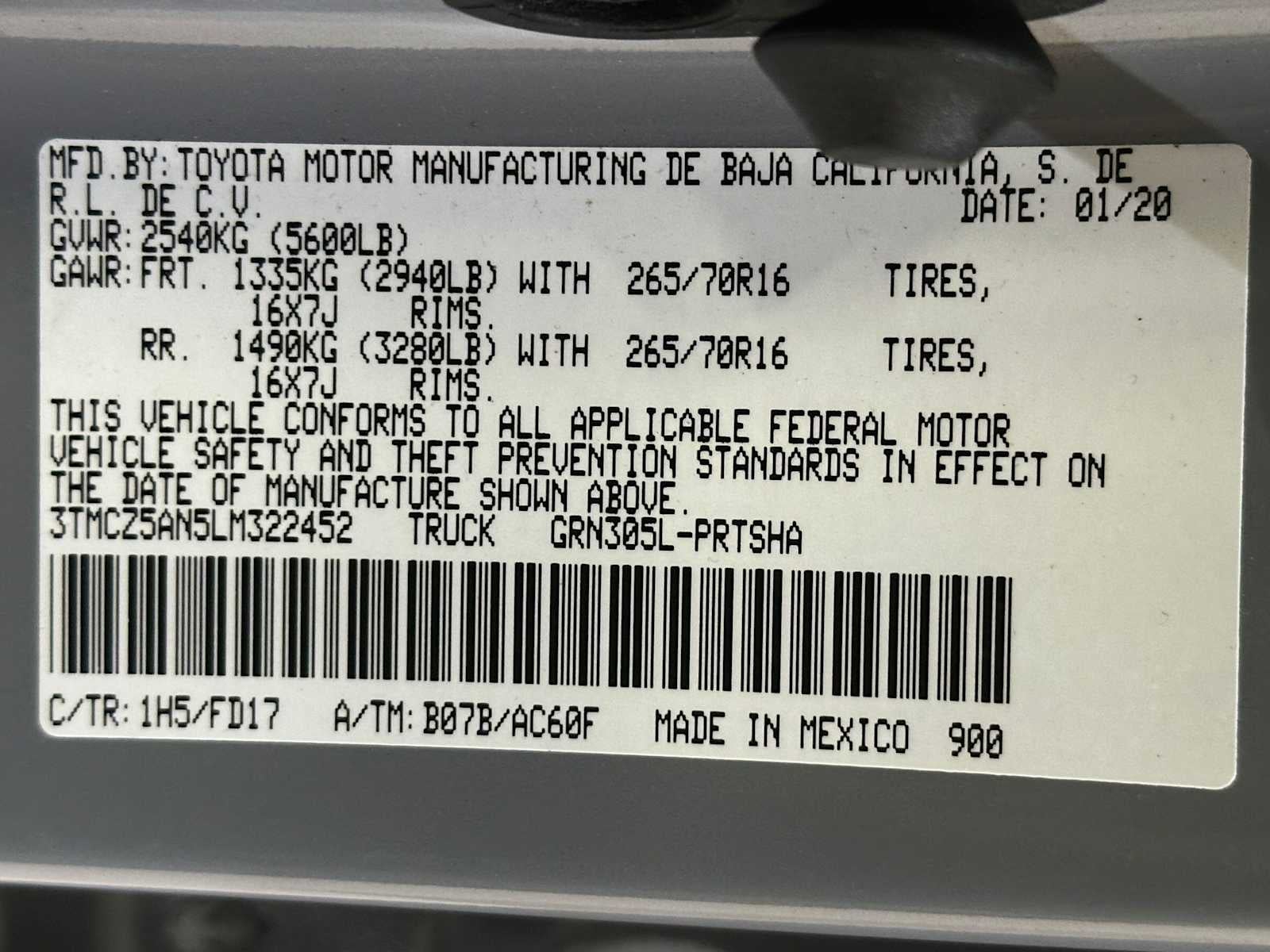 - Vehicle Name: Toyota Tacoma 4WD