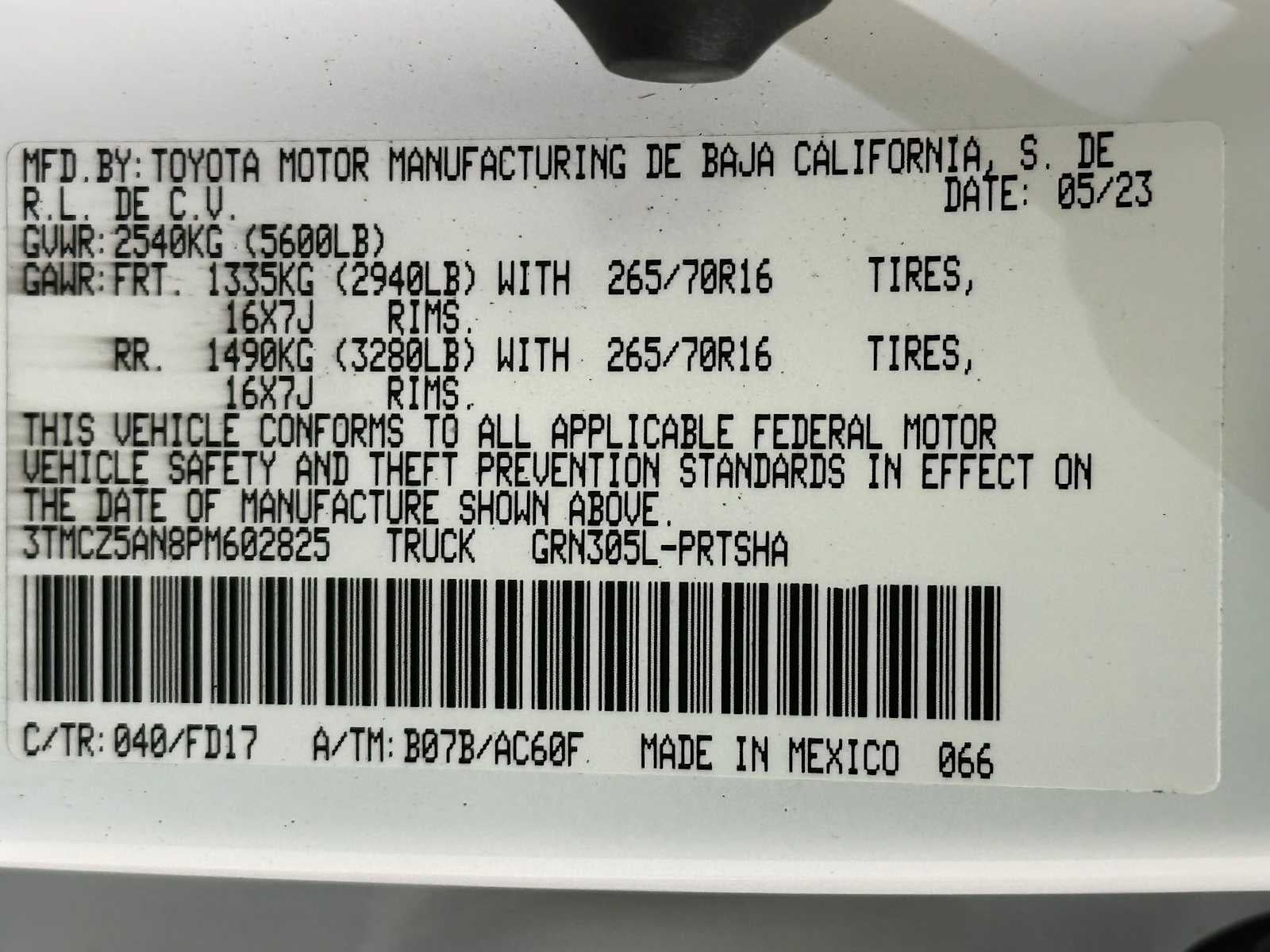 - Vehicle Name: Toyota Tacoma 4WD